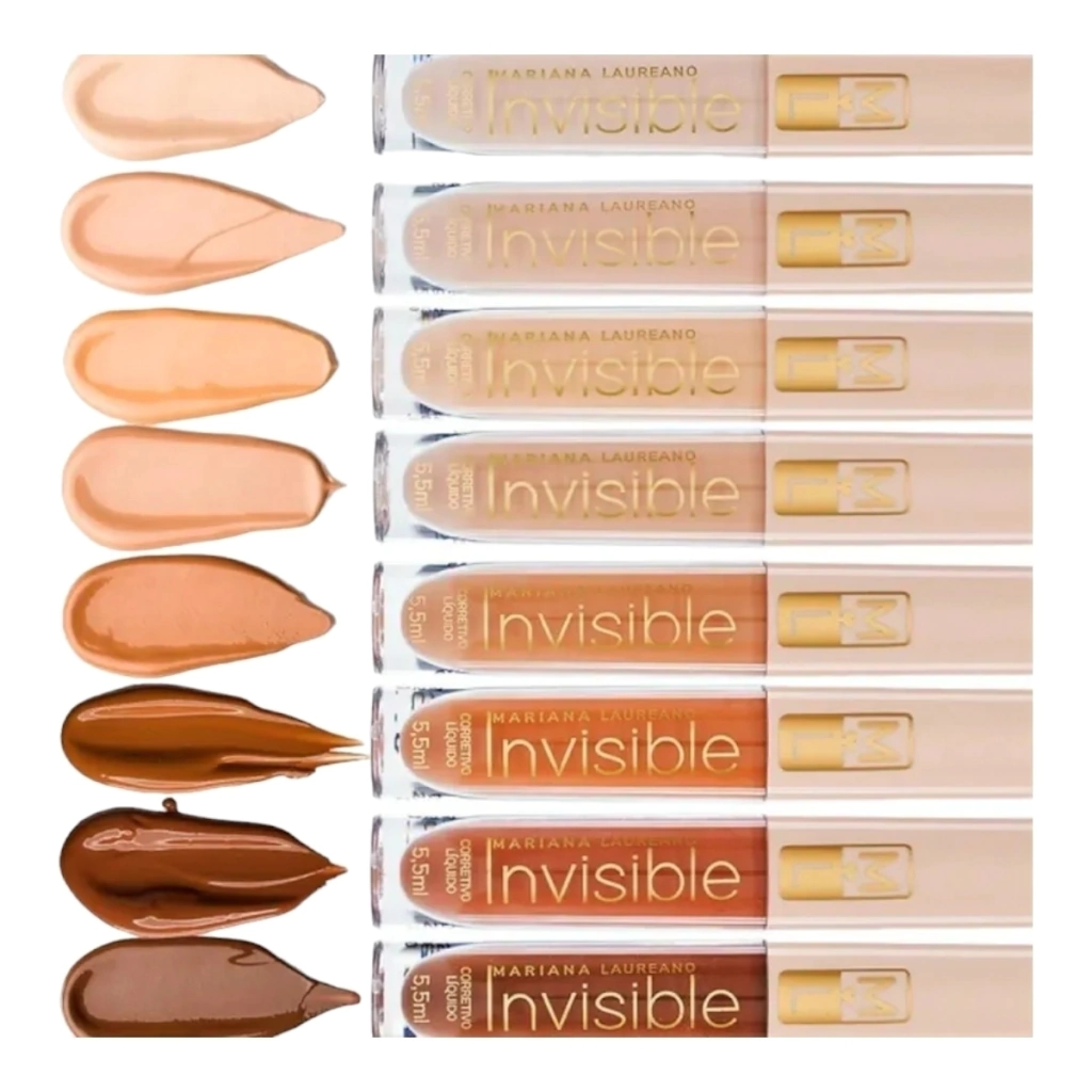 O Corretivo Líquido Deisy Perozzo Invisible Mariana Laureano tem textura fluida e uma alta concentração de pigmentos, adaptando-se perfeitamente aos mais variados tons de pele. Também pode ser usado como um poderoso primer de sombras, já que não pesa na pálpebra, o que permite um esfumado mais fácil e difuso com muito mais facilidade!