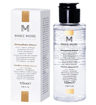 Demaquilante bifásico para a pele e área dos olhos. Sua formulação bifásica propicia limpeza, purificação, desobstrução dos poros, remoção da maquiagem (inclusive as maquiagens à prova d'água), retenção da umidade e proteção da barreira natural da pele. Produto livre de óleo mineral, parabeno, petrolato, sem corantes e ativos de origem animal. Não testamos em animais.