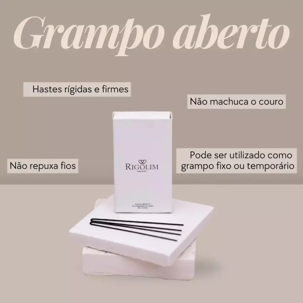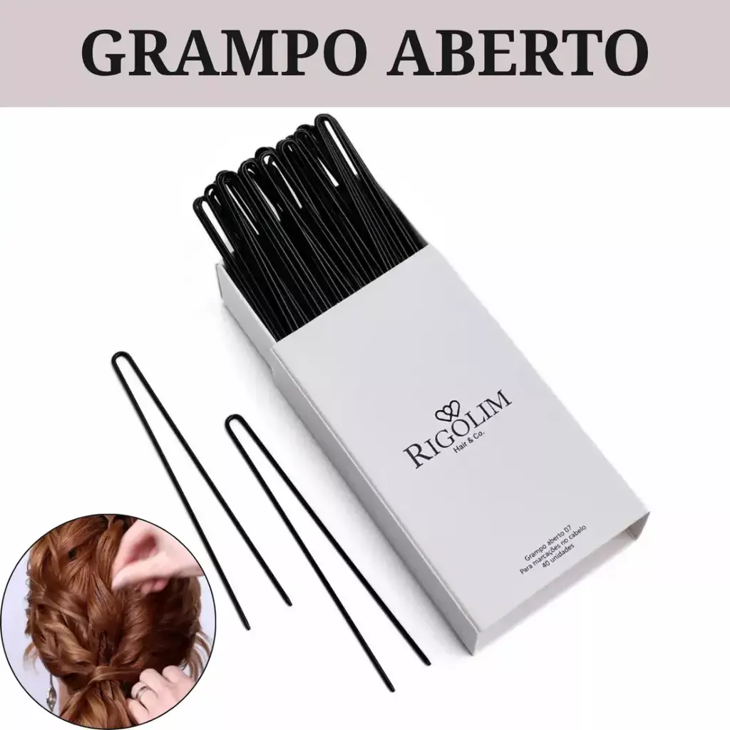 É feito com uma haste reta e com polimento na ponta, deixando o toque na cabeça super confortável. A sua pintura é especial e não deixa grudar nos fios mesmo com o uso de spray. Sua haste é rígida proporcionando uma maior durabilidade do produto e firmeza no penteado. O grampo aberto é ideal para criar mechas marcadas e posicionar os fios no penteado.