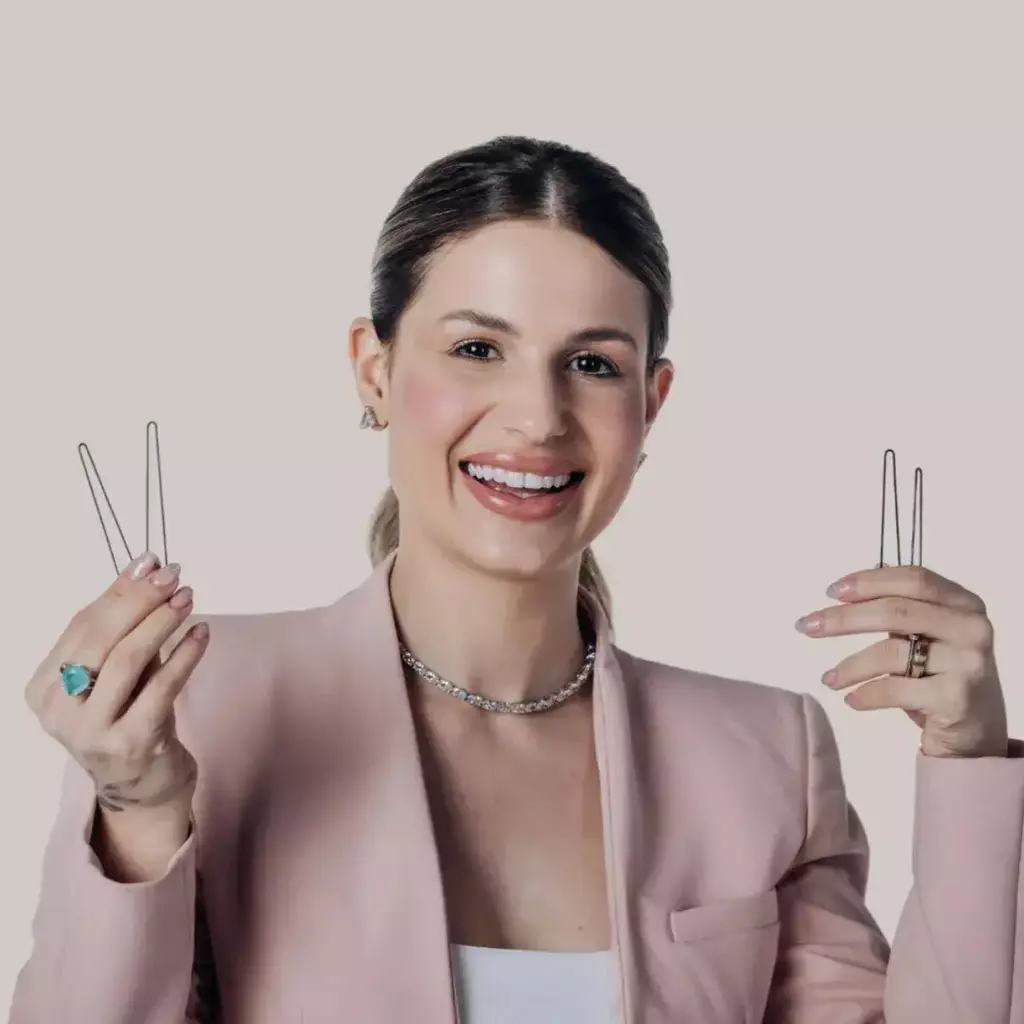 Modo de uso: Pode ser usado para sustentar as mechas, segura o moicano nas laterais, segura trança, prende marcações, prende enchimento, prendendo grinalda, você pode aplicar o fixador no grampo e enfiar na grinalda.
