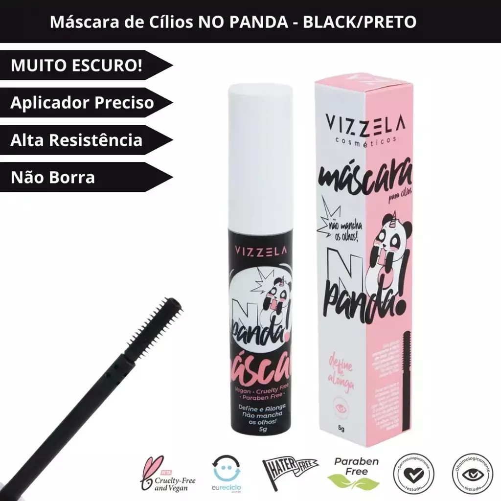 A Máscara para Cílios NO PANDA da Vizzela oferece um look sofisticado e delicado, realçando ainda mais a sua maquiagem. Sua fórmula inovadora com tecnologia NO PANDA não mancha os olhos e se desprende suavemente em forma de película com água morna.