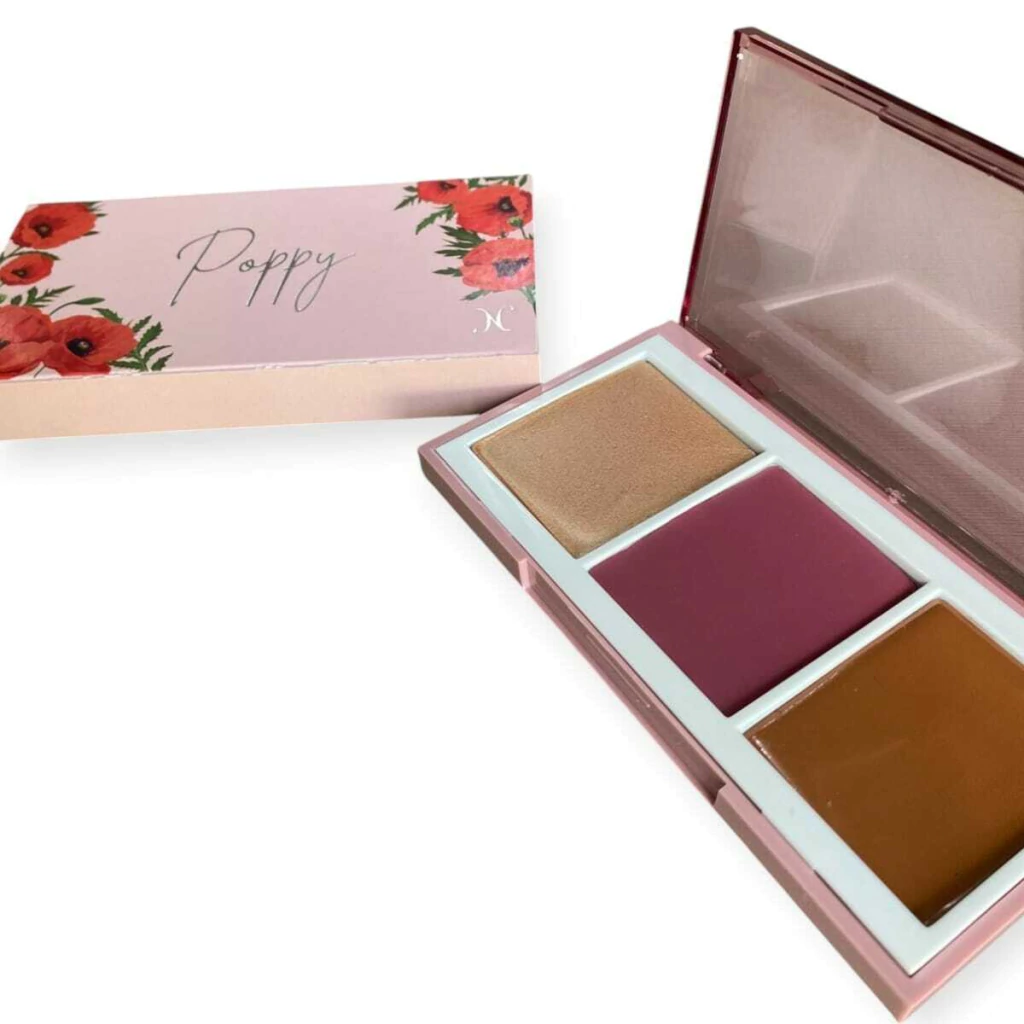 Paleta Cremosa Poppy - Iluminador, Blush e Contorno