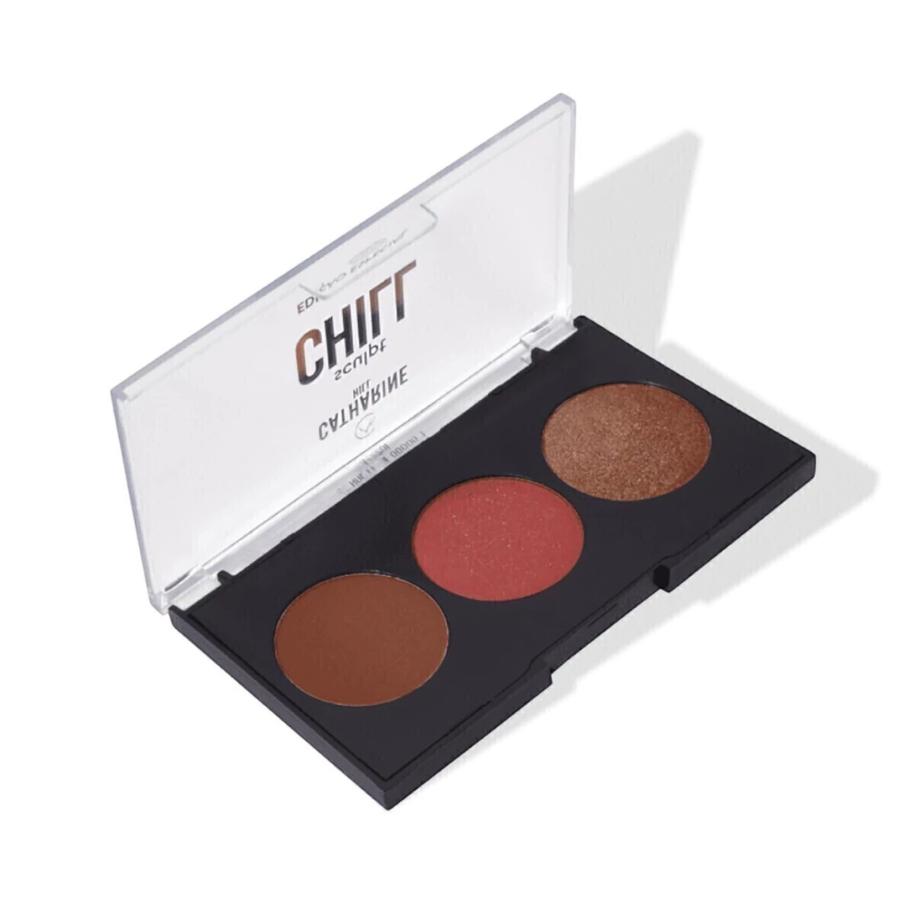 Com a missão de trazer luminosidade, brilho, cor e contorno para a make em um único produto, a Sculpt Chill da Catharine Hill vem com a proposta de uma paleta multifuncional compacta. Composta por um trio de contorno, blush e iluminador, ela possui textura aveludada, alta pigmentação, alta fixação, sendo de fácil espalhabilidade e praticidade. A SCULPT CHILL é uma edição especial e limitada, disponível em 3 cores, sendo indicada para todos os tipos de pele. Ela vem com uma embalagem compacta, facilitando o armazenamento em qualquer necessaire, além de ser cruelty free, vegana e livre de parabenos.