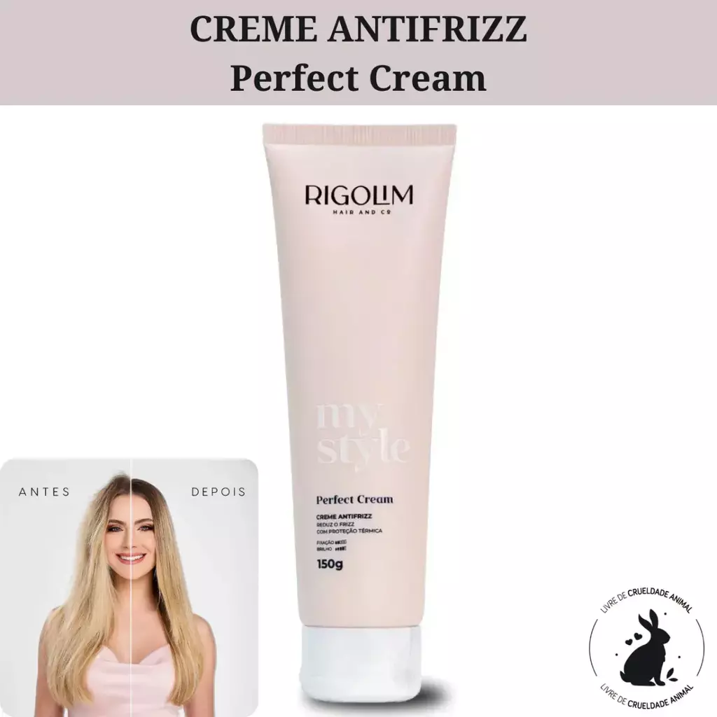 A Perfect Cream by Rigolim Hair & Co é uma pomada multifuncional que foi desenvolvida com matérias primas "Eco-Friendly" e é vegana. Possui cera candelila e óleo da semente de girassol proporcionando ação anti-frizz, tem proteção térmica e alta resistência a umidade. Aumenta a resistência e durabilidade dos fios, pode ser utilizado para modelar o cabelo na versão liso ou cacheado (potencializa o alinhamento e redução de frizz até a próxima lavagem). Possui ativos que forma um filme hidratado que se liga e fortifica o fio de cabelo danificado. Tem silicone volátil, ou seja, evapora rapidamente da superfície do cabelo, não deixando resíduo, além de facilitar o tempo de secagem no cabelo.
