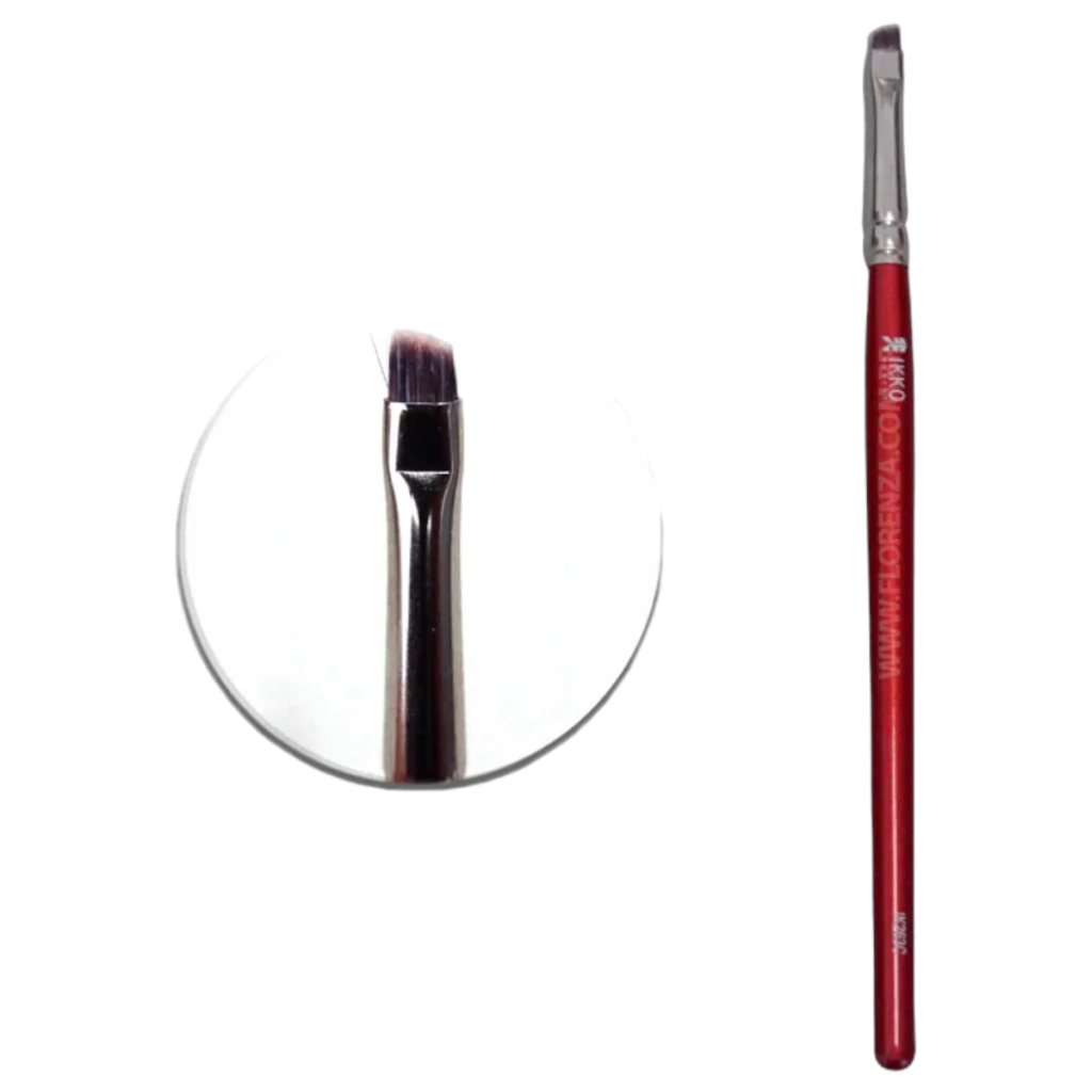 O modelo IK263C é um pincel chanfrado de ponta curta, possui cerdas mais firmes e é utilizado especialmente para aplicação de sombra na sobrancelha ou para delineado.