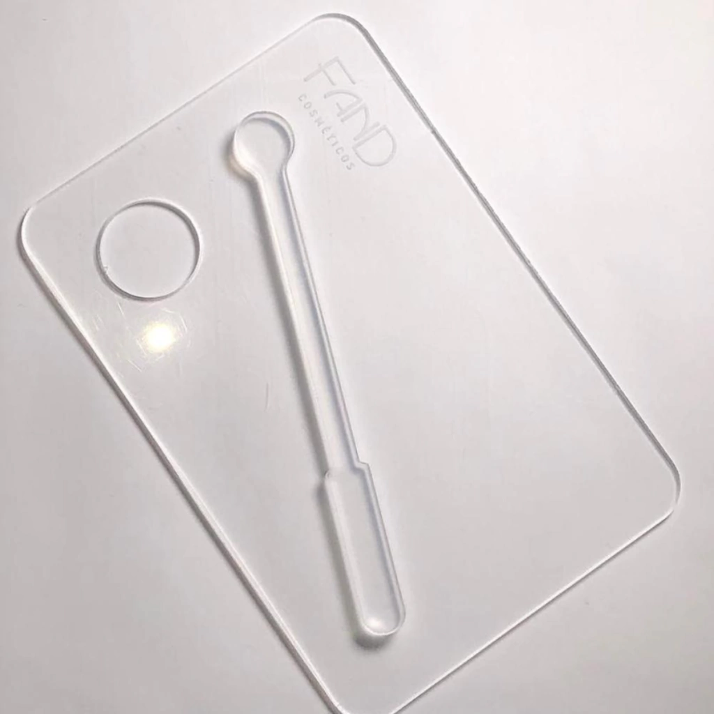 Elaborada para misturar e diluir maquiagem a Placa de Acrílico com Misturador Fand é ideal para para dar vasão a criatividade e solucionar necessidades em geral. A placa com espaço para o apoio do dedo proporciona firmeza e mobilidade e a espátula de acrílico pode ser facilmente limpa para coletar e misturar os produtos de maneira mais ágil e sem contaminação. O uso da da placa e da espátula na preparação da maquiagem é essencial para evitar contaminação e desperdício.
