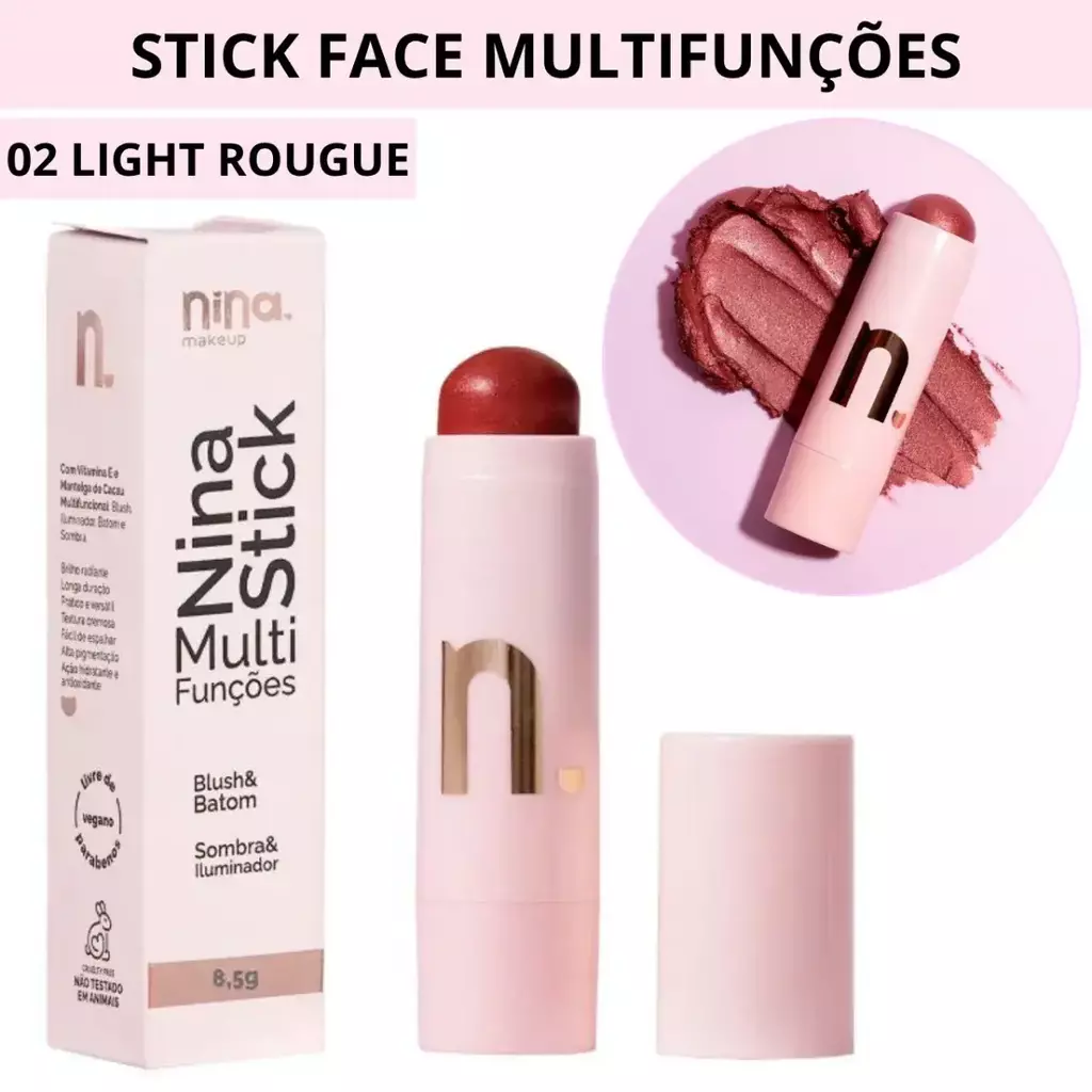 Podendo atuar como Blush, Iluminador, Sombra, Batom e a cor Light Rouge também como Contorno.